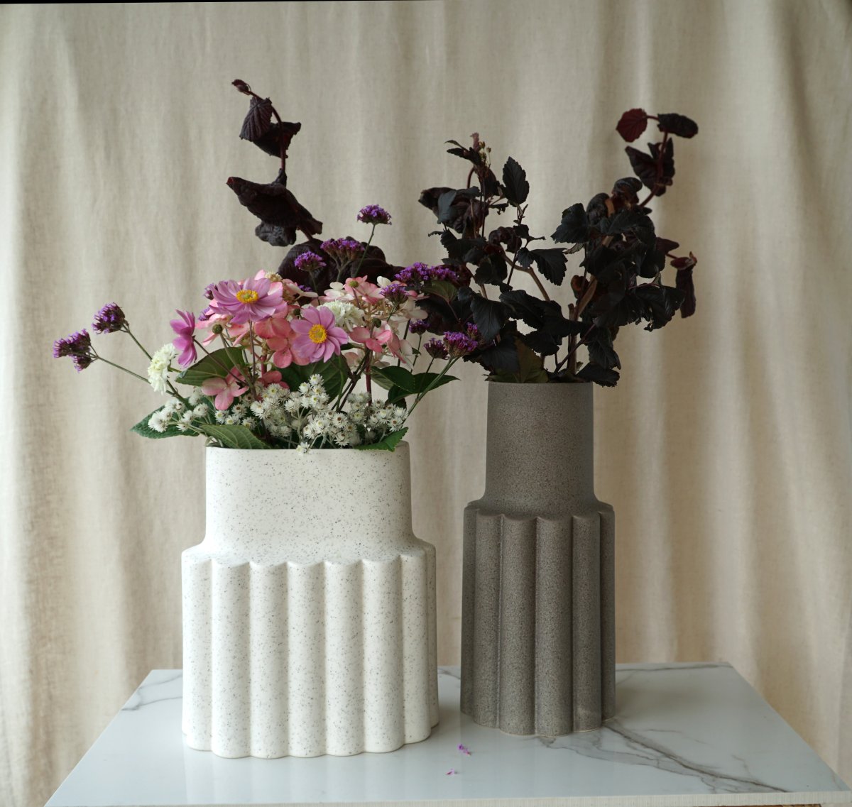 Die subtile Textur auf der Außenseite, die an Marmor, Stein und Moos erinnert, verleiht Mylla ein lebendiges und exklusives Gefühl. Die Vase ist ein zeitloses Objekt, das sowohl als Blumenvase als auch als dekoratives Element funktioniert. Für einen besonders stilvollen Effekt kann die ovale Vase wunderschön mit der niedrigen und hohen Version von Mylla kombiniert werden.
